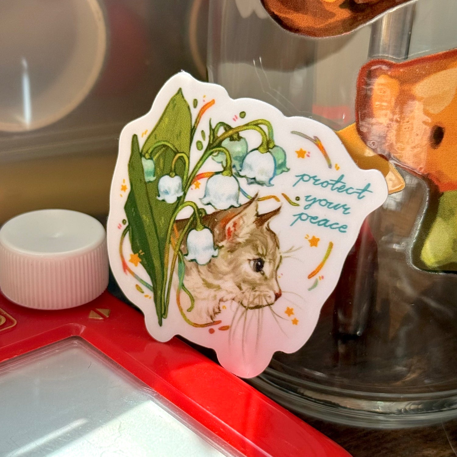 This sticker features Potato the cat and one of my favourite flowers- Lily of the Valley ! Free with any purchase and design is limited :)